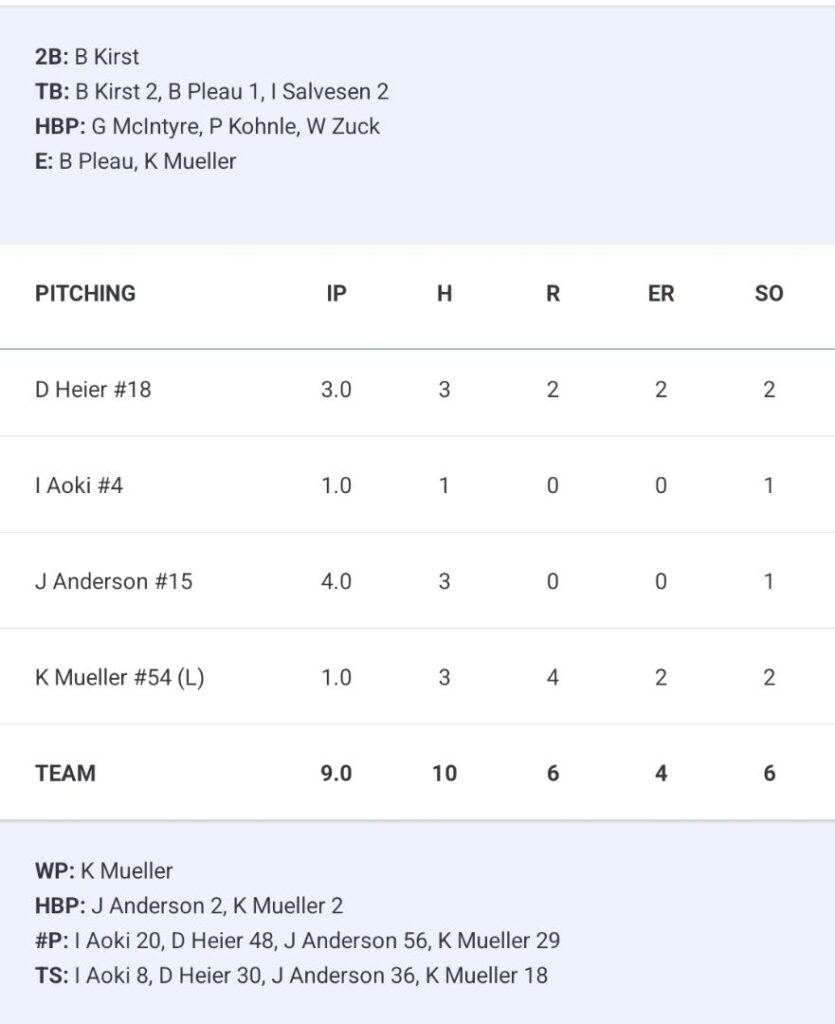 Brayden Pleau finally collected Green Bay’s first hit in the seventh, and the Ribbons tried to mount a late rally, bringing the tying run to the plate in the bottom of the ninth, but in the end, the offense just couldn’t get anything going, as they fell even further back in the NEWBL standings.